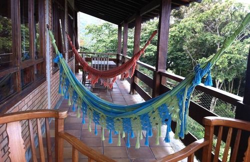 Situated in Alto da Praia Vermelha, this large house stands out for its breathtaking panoramic views of Red, Tenório and Grande Beaches. With a beautiful garden, the leisure area has swimming pool and barbecue. Preferably family and for up to 14 people. The condomindio has 2 portarias on the side of the beach and another that connects directly to the commercial center of Itagua, and with many restaurants and tourist services.