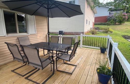 A large deck off of the great room offers a gas fire pit, heater, cooler, and plenty of seating with both a sitting area and a dining area. The deck also has a gas grill for cookouts. Driveway parking for 2-3 cars, depending on size of vehicle. 1/4 mile to Mon General Hospital and 1/2 mile to Ruby Memorial so also perfect for visiting medical professionals. It is walking distance to the PRT (WVU's rapid transit system), and is also directly on the local public transportation/bus line with pick-up available right out the front door. Quiet and peaceful neighborhood. Morgantown also offers so much more than WVU-related activities. Enjoy hiking and sightseeing at Coopers Rock State Forest and fishing and swimming in Cheat Lake, less than 20 minutes from the house. Pittsburgh is an easy day trip.