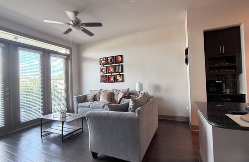 Enjoy a stylish experience at this centrally-located place.Dive into Houston's heart! Soak in cityscapes from your private balcony & explore nearby museums, Toyota Center, the zoo, and countless attractions. Relax in our spacious unit featuring a king bed, queen sofa bed, and a well-equipped island kitchen. Unwind with free WiFi, on-site parking, a sparkling pool, and a 24/7 gym. This urban oasis puts you steps from Downtown & Midtown, perfect for your Houston adventure for 4!