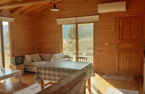 The house you will stay in is made entirely of natural wood within 17.5 acres. There is potable fresh spring water coming from the bottom of the mountain and 10 meters from the house. The house consists of two rooms, an American kitchen-living room and a bathroom-toilet. The distance to the sea is about 2 km and the entire bay is under your feet.