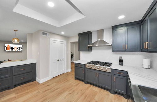 Newly remodeled! This spacious home in Houston's Energy Corridor offers top amenities, including a private gym, a fully equipped office with a monitor, and a serene backyard with a fire pit. The open-concept design connects a chef’s kitchen with quartz countertops to a bright living area with a fireplace. Enjoy a luxe primary suite with a king bed, a guest room with a queen, and a third bedroom with a convertible twin. A perfect blend of comfort and sophistication awaits!