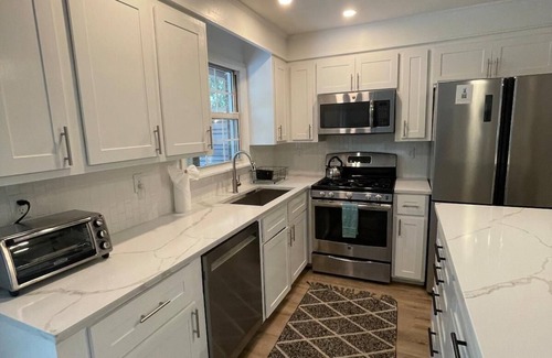 Cook dinner in the fully outfitted kitchen, or enjoy takeout from one of the many world class restaurants nearby on the back patio! Relax in the lush backyard and enjoy the swing or hammock while you play lawn games.