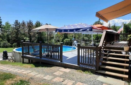 Your space offers you 700 square foot, one bedroom, one bathroom with pull out trundle bed with room divider for privacy as well as a pull down sofa for extra sleeping. The space has the potential to sleep 6 comfortably, 4 guests with booking and a $25.00 fee per guest over 4 guests up to 6 guests total. Our guests are welcome to use the pool and hot tub as they wish. Please be mindful of a few pool rules that also apply to the hot tub we ask to be followed for your safety. Bathing suits are required for the pool and hot tub. They are a shared space with us. This place also provides a whole house Generac, whole house alarm/fire alarm system with a separate zone alarm system specific to your space as well as a whole house water filtering system. Our property is 2 acres of lush green on a quiet country setting. We live on the property in a private separate area of the building/main house and will be available to help you during your stay. We will be available by phone, email or a knock at my door should you need any assistance or directions to a desired sight seeing adventure.