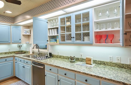 Our home is 5 bdrm / 4.5ba with plenty of space for large or multiple families, including canine family members. There are 3 king suites with private baths, 1 queen room, & 1 room with 2 twins. There is even a dedicated office, ideal for remote work.