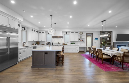 • Incredible chef's kitchen with 2 professional stoves and a large center island for prepping large group meals, fully supplied with everything you could ask for.