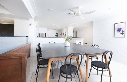 Outside the house, you'll be able to spend the day in the secluded outdoor entertainment area relaxing around the large pool, cooking on the new BBQ in an undercover area, eating and drinking in the sun at the 18-seat outdoor dining table, laying out on the manicured grass and listening to your music. There is even a separate bathroom w/ shower plus toilet accessible from this area, so no need to run through the house.