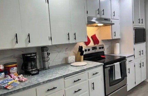 Amenities to list a few: fully stocked kitchen, full bathroom, private covered patio, private fully fenced in backyard, all bedrooms with closet, four beds, living room with SUPER comfy couch (can sleep two), 65” smart television, 40” smart television in the king sized bedroom, free parking, free wifi, refrigerator/freezer, stove/oven, free washer and dryer in unit, heating, storage, and more.