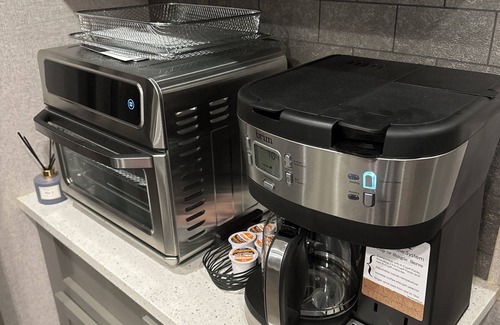 Master bedroom includes chest, closet and mounted TV. Full bathroom beside with door for entry and another for guests. Kitchen dining and living area with mounted TV. Gas stove and oven with microwave. Toaster and coffee pot available. Living room sleeper sofa pulls out for extra bed. 4- seat dining room table. Large bunkhouse room with 4 beds for large groups. 2nd full bath off the bunkhouse for plenty of privacy.