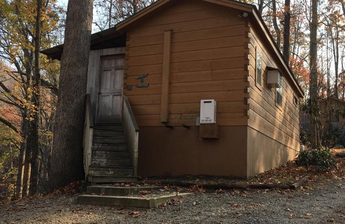 This cabin is very romantic, cozy and very private. The gas stove in this cabin will keep you warm on cool winter nights. While you watch the big flat screen TV. This cabin looks over a pond in the winter months. It has a handmade headboard with a king bed so you can watch tv or catch some zzzzzz's. This cabin has minimal cell service and great WiFi service. Most guest are able to use WiFi calling. It feels like a tree house when you are out on the porch. Hugs and Kisses has two rocking chairs and a lamp for you to read by as the sun is rising on the horizon. It has a full kitchen, and washer\dryer. It also has a gas grill for you to cook your big catch or just a juicy steak. This is just the cabin for you, it has a feeling of a bed and breakfast with a lot more privacy and woods. Hugs and Kisses is pet friendly with solid rails 36" high so you and your dog can relax.