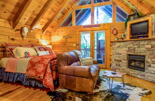 Escape with your loved one to "Hugs and Kisses". A quaint little luxury cabin located in the Great Smoky Mountains. Enjoy some rest and relaxation in the two person hot-tub or enjoy a good book in one of the rocking chairs on the back porch.