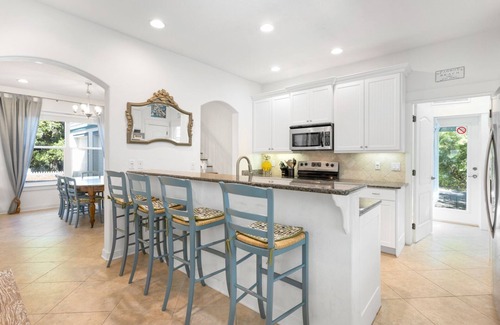 For extra privacy, the carriage house above the garage offers a queen bed, full kitchen, and space for two guests. Enjoy all the excitement 30A has to offer, then retreat to the tranquility of Hummingbird Cottage.