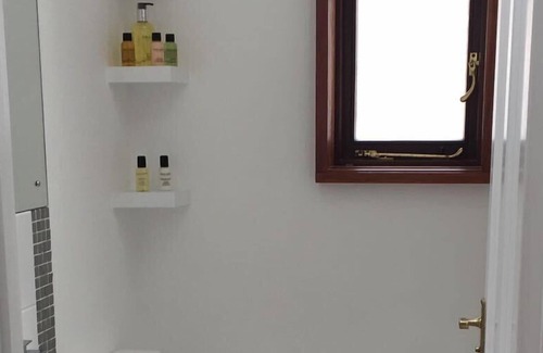King-sized double bed with luxury hypoallergenic duvet and pillows and crisp bed linen. Perfectly appointed waterfall shower room and separate loo, with lovely soap and shampoo provided. Equipped kitchenette for modest cooking, or simply opening a bottle of bubbly to enjoy. Tea, coffee and other essentials provided.