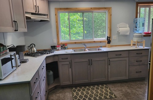 You will enjoy an 840 square foot living space with a bedroom loft and wood burning stove to keep you warm during the cool nights. There is an ample supply of games and books to enjoy. The kitchen is well equipped with things like a Keurig coffee maker, toaster, microwave, pots, pans, utensils, cooking oil and basic spices, and offers both indoor and outdoor cooking options. If cooking is not your thing, enjoy a short boat ride into Huntsville to take in some local dining and entertainment. A visit to the Nutty Chocolatier is a must!