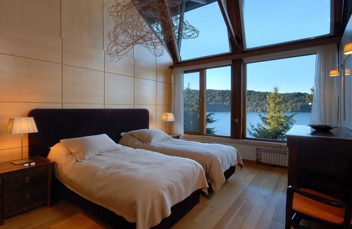 Relax after a day on the mountain in front of the crackling fireplace indulging in views of Lake Nahuel Huapi and the mountains.