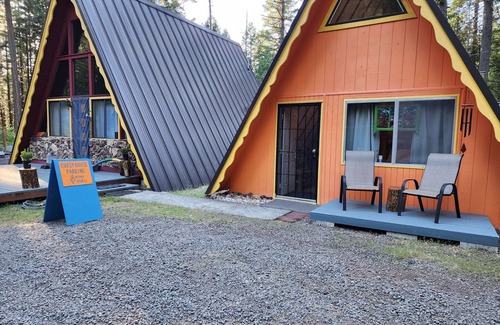 Make yourself at home in this superb 1-bedroom McKenzie Bridge retreat, sleeps up to 5. Nestled in the heart of nature, this bright and cozy A Frame offers a tranquil escape for YOU. With window AC to keep cool, WiFi to stay connected, books and games to entertain one or many, and a well stocked kitchenette/ coffee bar... this charming hideaway has everything you need.