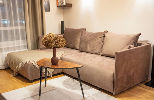 Discover this charming 2-bedroom gem in Vilnius. This pleasant apartment features a cozy bedroom with a full bed, a lovely living room with a sofa bed, and a beautiful bathroom with a bathtub and shower. Guests can enjoy amenities like heating, WiFi, a full kitchen equipment, a hair dryer, a washing machine, and an iron during their stay. Beautiful view to the city. Enjoy summer evenings and sunsets in cosy balcony. Strategically convenient location with cafes, restaurants, a shopping center, gyms, a water park, a swimming pool, Twins bet arena, Compensa concert hall nearby. Enjoy the nature in the city in Ozas park, o Verkiai regional park (forest) just in ten minute walk. The building has enclosed children's playground.