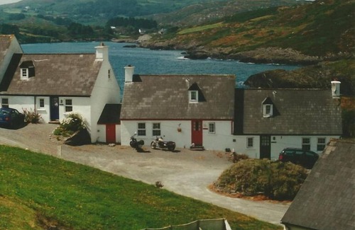 From the Cottage looks out directly on the Atlantic Ocean. The Bay of Tragumna is to speak in front of you. The house has about 80 square meters, it is divided into a large living / dining room with an open fireplace as the center and integrated kitchen on the ground floor, this room is open up to the roof and forms one side of the house. The other half consists of one bedroom and a bathroom on the ground floor and upstairs, which is reached by a staircase with a small gallery from the living room. The cottage is fully furnished, bed linen, towels and tea towels are provided. The kitchen is well equipped, in the living room there is CD player, satellite TV and DVD player, the house has central heating and on the sea side a large terrace with access to a very large lawn. About the property leads to a small pebble beach in the bay; A sandy beach is 200m away. Near the house there is a traditional Irish pub with live music on weekends. In bustling Skibbereen (6km) you can buy everything that makes life pleasant. The coast between Tragumna and Castletownshend is spectacular with ever-changing views z. B. on the famous Lighthouse of Fastnet Rock