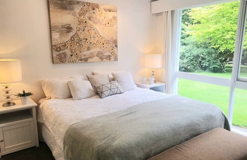 The open plan cottage features idyllic garden views from every room and is stylish and inviting. With a huge slow combustion stove and reverse cycle air-conditioning throughout, it's like your home away from home. We have tonnes of books to read, board games, and 2 x TV’s with DVD. There are 2 bathrooms and a modern fully equipped kitchen with an extra large oven perfect for the entertainers! The 3 bedrooms all have tranquil views to the gardens and the main has it own ensuite. With a lovely deck and gorgeous shady gardens you’re bound to find a quiet spot to soak up the serenity.