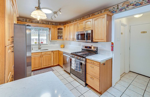 KITCHEN: Coffee maker, cooking utensils, dishware & flatware, dishwasher, ice maker, microwave, spices, water filter