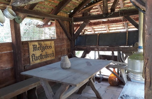 The idyllic self-catering house with historical charm, wood firing with tiled stove and open fireplace, spacious conservatory and garden offers enough space for small groups and families in a quiet location. Dog owners welcome. Direct access to the hiking trails and the Vogelsberg volcano cycle path, ice rink, outdoor pool and indoor wave pool in Lauterbach offer opportunities for activities in the immediate vicinity. The small sauna in the house and the large winter garden sweeten your stay on days with bad weather. The property manager is happy to offer vegan catering for your stay. There is an organic butcher in the village who also offers baked goods if you order in advance.