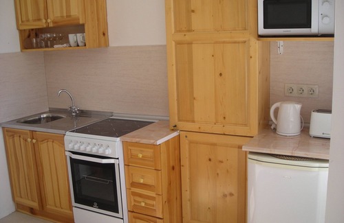 The apartment has a large and luxurious bathroom with a high quality shower, the kitchen is well equipped including an oven and hob and microwave. There is a dining room table and chairs for 4 people.