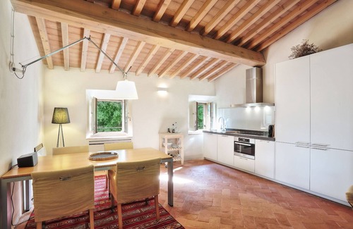 Each of the three apartments boasts breathtaking views of the rolling Tuscan countryside.