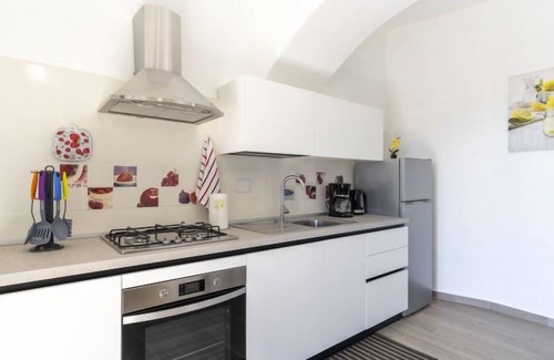 "Il Giardino", 3-room apartment 100 m2, on the ground floor. Renovated in 2023, comfortable and tasteful furnishings: living/dining room with TV. Exit to the garden. 2 double bedrooms. Open kitchen (oven, dishwasher, 4 gas rings, toaster, kettle, electric coffee machine). Exit to the garden. Shower/bidet/WC. Air-conditioning, forced-air heating. Heating available only from 15.10. to 15.04. Garden 65 m2. Terrace furniture, barbecue, deck chairs. Very beautiful view of the sea and the resort. Facilities: washing machine, hair dryer. Internet (WiFi, free). Please note: suitable for families. Non-smoking house. Maximum 1 pet/ dog allowed. Private entrance. IT008060C2GXE3YL5C