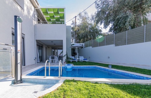 Yes, this Panormos villa has a swimming pool. Check the Facility Overview section for details about the pool and other available facilities.