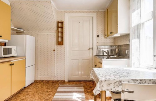 "Ilingetorp", 2-room house 75 m2 on 2 levels. Comfortable furnishings: living/dining room with Scandinavian wood stove (only for decoration), dining table and satellite TV. Kitchen (4 hot plates, oven, toaster, kettle, microwave, freezer, electric coffee machine) with dining nook. Shower/WC. Electric heating. Upper floor: 1 room with 1 double sofabed and 1 double bed. Entrance hall with 2 beds. Wooden floors. Box-room. Facilities: washing machine, children's high chair, baby cot. Please note: non-smoking house. Maximum 1 pet/ dog allowed.