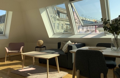 Come to Vienna and stay with us in a brand new (penthouse) just around the corner from the Hundertwasserhaus and the Kunsthaus Wien - and the green Prater is also within walking distance. The apartment has a bedroom (box spring bed), as well as a living room area (couch) and a fully equipped kitchen.