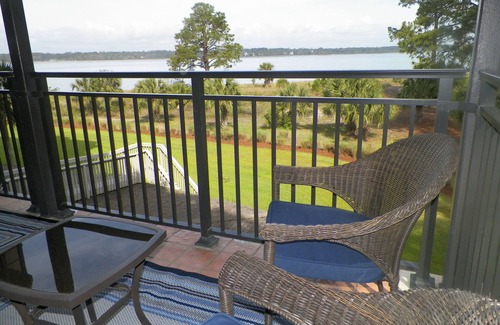 Guests will experience breathtaking views from living room, master bedroom, and breakfast area . A large balcony can be accessed from master bedroom and living room with stunning views of the Sound. A second balcony, off the breakfast nook, also provides lovely views of Calibogue Sound and the perfect spot to enjoy your morning coffee. Guests often can view dolphins as they relax in this villa or on the balcony.