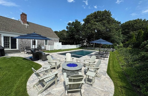 The focus here is the brand-new heated saltwater pool, hot tub, and its hardscape, of course. No doubt, the majority of your outdoor time will be spent on the new patio and in the heated pool and/or jacuzzi. After a day on the beach, head to the patio to experience the bliss of an outdoor shower. Fire up the gas grill and dine al fresco, or lounge on a chair in the sunshine. After dark, gather around the gas firepit and enjoy a star-studded Cape summer evening. This home is perfect for any recreational activities your group may have in mind.