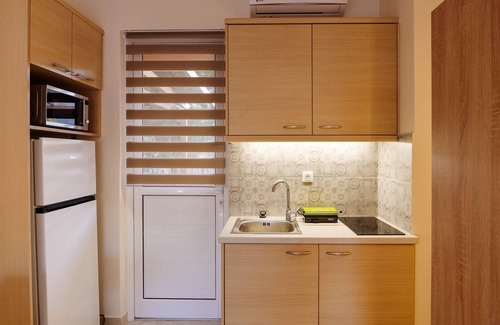 Enjoy your stay in this impeccable studio apartment in Schinias. This charming property has a private outdoor lounge area where you can relax after a long day at the beach. Just 2.9 km from the sea, next to the Schinias National Park and Marathon Ancient Ruins. Enjoy afternoon walks in the country residential zone where you and your kids can walk to the playground and ride your bicycles safely. This studio is equipped with a kitchenette, free WIFI and smart TV.