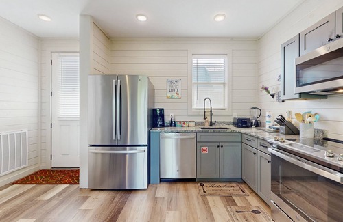 Step inside to discover a bright open floor plan that effortlessly combines all living spaces into one! The open kitchen has been appointed with modern stainless steel appliances that will make cooking a breeze. When mealtime is over, cozy up in front of the electric fireplace with a good book or stream your favorite shows on the smart TV. The living area opens onto an extensive deck with impressive views of the mountains, two rocking chairs, and a seating area. Upstairs, discover a loft with beds and an entertaining rec area with a foosball table and a second smart TV.