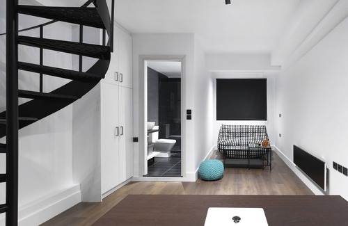 An industrial space turned into a digital nomad’s paradise! Split in 3 open space levels, with a ceiling as high as 10m , this urban space fills all your requirements. You will also have a big desk with a screen and a keyboard at your disposal.A 200 Mb fibre internet connection satisfies every digital need. The b/w color palette enriched with splashes of orange keeps you calm yet energised. On the ground level there is a spacious living room, a fully equipped kitchen and a dining area. On the lower level there is a bathroom and an office space that offers privacy, it includes a desk with a screen, a keyboard and lamp. On the top level a bedroom with a double bed nested by the window next to a beautiful tree, brings calmness.There are lots of great restaurants and coffee bars within a few minutes walk and on Saturdays there is a food market that takes place nearby. The apartment is situated in the middle of everything in a neighborhood full of life! Ideal for every type of guest!Agions Nikolaos tube station is a 10 minute walk, hop on the train and after one stop you will be ready to explore the historical center of Athens.Visit acropolis and Acropolis museum, shop at monastiraki, have a coffee at plaka, walk at Dionysiou Areopagitou, a splendid road at the feet of the Acropolis. The choices are endless!There are also many bus stations close to the apartment, with buses running 24/7 transporting you to every single spot in the city.The house has its own private entrance from the street.IF YOU WISH TO USE THE SOFA BED, PLEASE MAKE YOUR RESERVATION FOR 2-3 GUESTS!Please note that for check-ins between 21:00pm-23:00pm there is an extra 15€ fee paid in cash upon arrival.