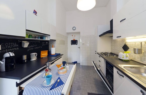 The 140 sqm apartment is well furnished, comfortable with large spaces: it has 3 bedrooms, two doubles and the other with two single beds that can become double, with internet air conditioning.