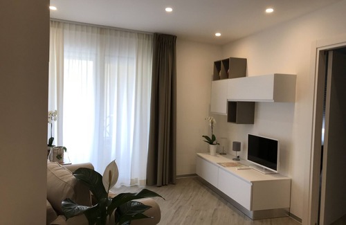 Recently built structure. It is centrally located in Matera but is easily accessible by car. Just 300 m from the Central Station where the trains connecting Matera to Bari leave, from the bus stop for Bari airport and Ferrandina station, from the FrecciaLink stop which connects the Frecciarossa high speed train. Piazza Vittorio Veneto, the starting point for visiting the Sassi, can be easily reached in 10 minutes on foot. The apartment, on the first floor of a building with a lift, has three bedrooms with double beds, each with a private bathroom. In addition, a double sofa bed is available in one room. The living area is equipped with a flat-screen television, sofa, table and fully equipped kitchen. Guests have the entire apartment at their disposal. Max 8 guests. Free Internet Wi-Fi. The area is well served by both public and private car parks.