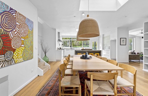 Located just near Pt Leo Estate, this house is nestled away in a cul de sac abutting a natural reserve. A long windy driveway awaits you. As soon as you arrive, like a switch, a sense of calm immediately descends upon you. Pop a bottle of champagne, get the fire started, run your favourite tunes through the speakers and start to relax and unwind.