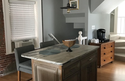 This is a quaint second and third floor apartment in the heart of the historic district of the town of Marblehead. Step out the door and you will find shops and restaurants for everyone's taste. Only a short walk to parks and the harbor. Recently updated from floor to ceiling, and fully furnished with everything you need to make this your home away from home for a week! There are two bedrooms, each with a Queen bed, and a pull out queen size sofa. Includes one car off-street parking.