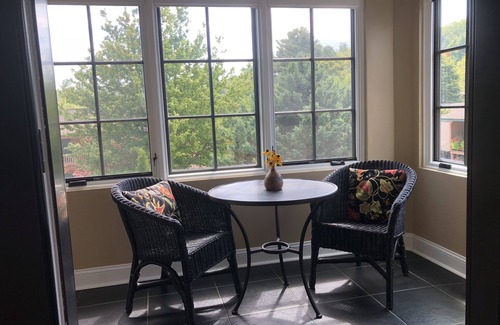 Discover what it is like to live as a local in this beautiful 1,427 square foot home, located just off of Main Street in the Village of Blowing Rock, N.C. True to it's name, The Artist's Loft is located above the shop of local Silversmith and Artisan, Gaines Kiker. This lovely contemporary home features an ensuite master as well as ensuite guest room. The spacious, open concept features many windows that allow for an abundance of natural light. Open the french doors to the sun porch and enjoy a morning cup of coffee or an evening cocktail. This specialty kitchen offers stainless steel appliances, a gas range, soapstone countertops, and is fully stocked with cooking essentials to create gourmet meals. Our guest have 2 private parking spaces at the entrance to the home.