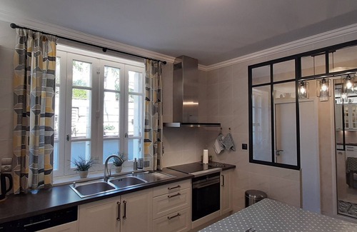Independent cottage on 2 levels: Garden level: Integrated kitchen with Dishwasher, Fridge Freezer, Microwave, Oven, Induction hob. Living room / lounge, north west orientation, convertible sofa (120), TV, DVD, Bathroom: bathtub (shoe), WC and washing machine.