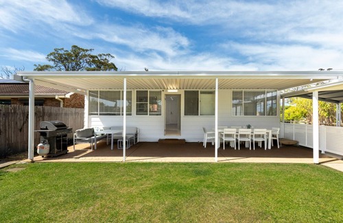 Wake up and make yourself an espresso to enjoy on the recently renovated covered back deck. When everyone is up and ready for their first swim of the day, pack the beach cart with boogie boards and snacks in the esky, and walk just five minutes to the gorgeous waters of Callala Bay. The shining sands and sparkling waves continue for kilometers around Jervis Bay, so go on leisurely walks along the shore, or settle in on the sand for a lazy morning of swimming and sunbaking where the kids and pets can splash for hours.