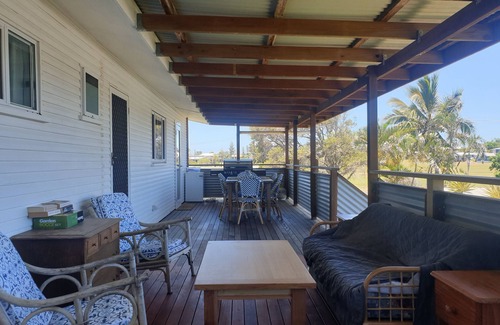 Welcome to the best pet friendly beach house experience in the Elliott Heads area. Bring your K9 best friends for a fabulous beach holiday (they are welcome inside and out). Huge ocean-facing deck. Fully refurbished in December 2021 with new bedding, linen, furniture, smart TVs, free wifi and all kitchen equipment and appliances and located in a quiet street at quaint Elliott Heads village. 100 metre walk to the sensational sandy Elliott River, patrolled surf beach and surf-side fish and chip shop. Lighthouse is a dream location for your summer vacation or winter getaway. We are known for our world-class conditions for kite-surfing and renowned pristine waters where you can whale watch from the headland, snorkel over reef just off the beach and reel in cracker fish from the shore. Lighthouse is four houses down from the riverside walkway which runs along the beach north through nearby villages. Perfect for a long leisurely walk, bike riding and rollerblading. Fantastic bowling club with a free bus if you want a tipple and terrific food. Lighthouse is located only 20 minutes from the bustling centre of Bundaberg, which has an airport. Your pets will love the fully fenced yard and if you love your pets inside, snuggled up on the couch with you; this is the dream holiday beach house. Free high-speed NBN WiFi included for all the family. Everything is here for the perfect holiday in the quietest street in dream Elliott Heads. Just pack your towels and you're ready to go.