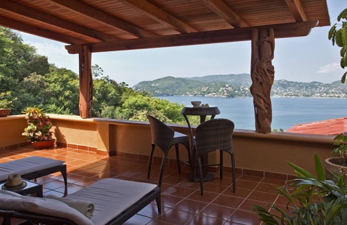 The peaceful master bedroom suite has a king-size bed and a large deck where you can sunbathe while taking in the view of Zihuatanejo Bay. The ocean breezes from both terraces are divine!