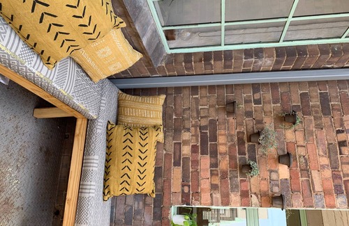 The apartment is in the arts district of Maboneng—a Sesotho word meaning "place of light". This magical urban area is a centre of creative energy with its mix of restaurants, coffee shops, clothing boutiques, art galleries, retail, and studio space.