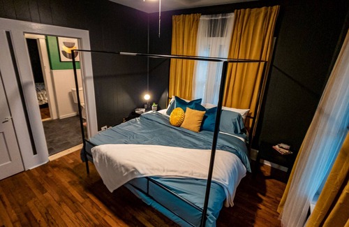 Cozy two bedroom with a jack and jill bathroom. Both bedrooms come with their own smart tv so that you may relax after a long day of touring the city. It is in a central location but far enough that you can enjoy the peacefulness of a quiet neighborhood in the evening. When you don't feel like eating out you can use the fully stocked kitchen or BBQ grill and insta-worthy dining area. Finally, if you want a night in, the backyard is secluded enough to have a bonfire outside.
