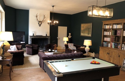 Its lounge (60 m2) with billiards, its dining room (60m2) with its rustic furniture and refined decoraton and the kitchen will make you spend idyllic moments.