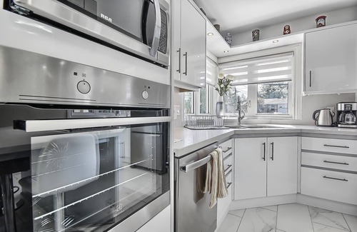 Whether you’re here for a short time or a long time, stay in the heart of Toronto in this newly renovated, stylish 3 story holiday home. Savor complimentary coffee in the fully equipped kitchens. Cozy up next to the fireplace. In the summer, take a relaxing walk through the larger Toronto Ravine. The house is located just 5 min away from a major Highway. It takes about 15 min to reach the famous Entertainment District and Toronto Harbourfront activities. Immerse your group in opulence & space, perfect for friends or families.