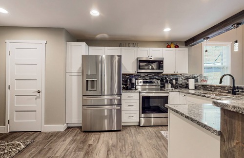 Upon entry, you'll be met with a bright interior and a cozy atmosphere throughout the well-appointed living area. Relax and make yourself at home by resting on the plush furniture, streaming a movie marathon on one of the three large TVs, or serving brunch on the immaculate property. Prepare grand meals and hiking snacks in the sophisticated kitchen, equipped with stainless steel appliances, ample cupboard room, and a breakfast bar. Kids and adults alike will love playing games on the retro arcade! Comfortable beds in spacious bedrooms ensure that everyone will receive a wonderful night's rest from the day's adventures.