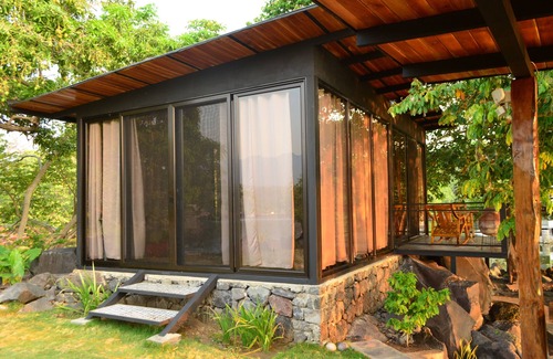 Relax and take inthe sounds of exotic birds, monkeys, and all nature has to offer on your own private island. Isla Mirabel is locatedless than 5 minutes from the Marina Cocibolca and 10 minutes from the Unesco World Heritage site of colonial Granada. The island is full of exuberant flowers and has a beautiful view of the Mombacho volcano. The glass house blends in with the trees, providing privacy for your stay. Swim, kayak, paddleboard or simply enjoy the beautiful surroundings.